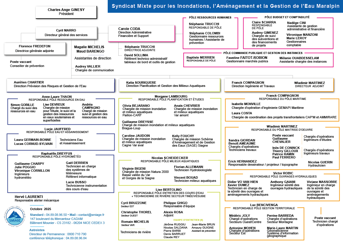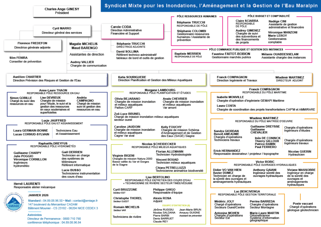 Le Syndicat Mixte pour les Inondations, l’Aménagement et la Gestion de l’Eau maralpin, ou SMIAGE ; a été créé par arrêté préfectoral du 1er janvier 2017 et labellisé le 22 juin 2018 en tant qu’Établissement Public Territorial de Bassin (EPTB) par le Comité d’agrément du Comité de Bassin Rhône-Méditerranée.