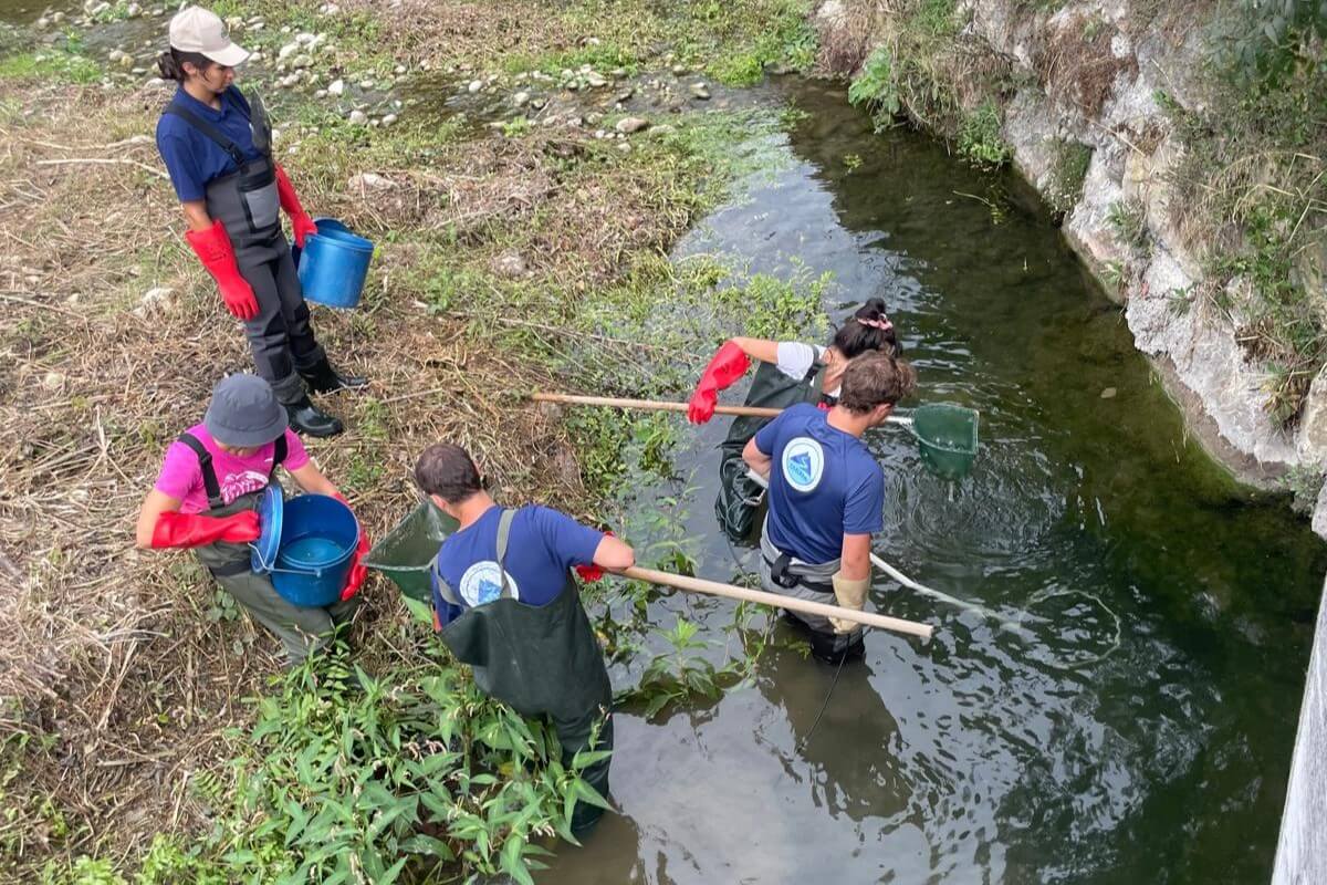 › Pêche de sauvegarde réalisée par les agents du SMIAGE, 1482 poissons déplacés, dont 4 espèces identifiées : barbeau méridional, anguille, vairon et chevesne.